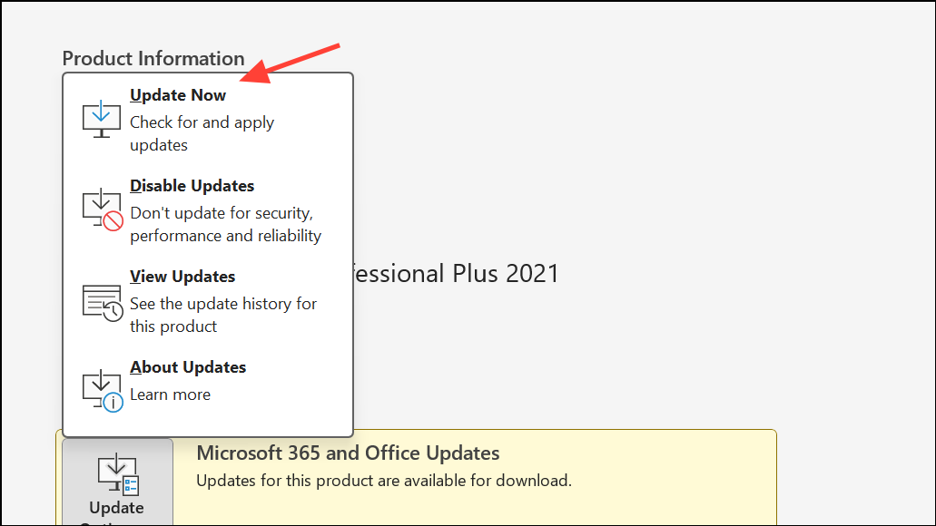 Step 1: Launch Outlook, then select File > Office Account. Click Update Options and choose Update Now. This ensures you have the latest bug fixes and compatibility improvements. After the update completes, close and reopen Outlook before attempting to print again.