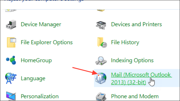 Step 2: Open the Control Panel and select Mail (search for "Mail" if not immediately visible).
