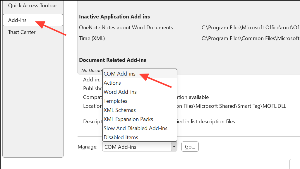 Step 1: Faulty add-ins or antivirus programs sometimes block outgoing mail. In Outlook, go to File > Options > Add-ins. At the bottom, select COM Add-ins and click Go. Uncheck any add-ins you do not need, especially those related to CRM, social connectors, or third-party integrations.