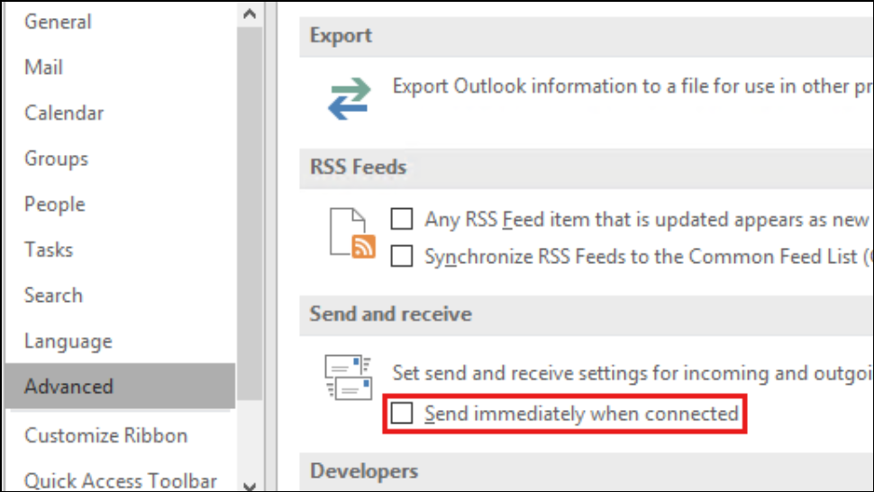 Step 3: Make sure the box for Send immediately when connected is checked. This setting ensures that Outlook attempts to send messages as soon as a connection is available.