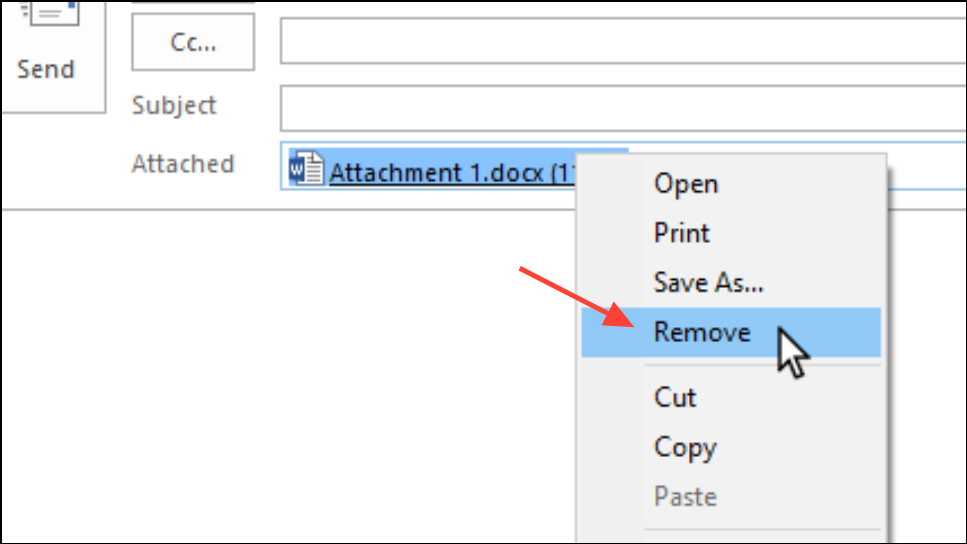 Step 2: Go to the Outbox folder. If an email has a large attachment or appears stuck, right-click the message and select Removeto remove it, or drag it to the Drafts folder to open and edit the attachment.