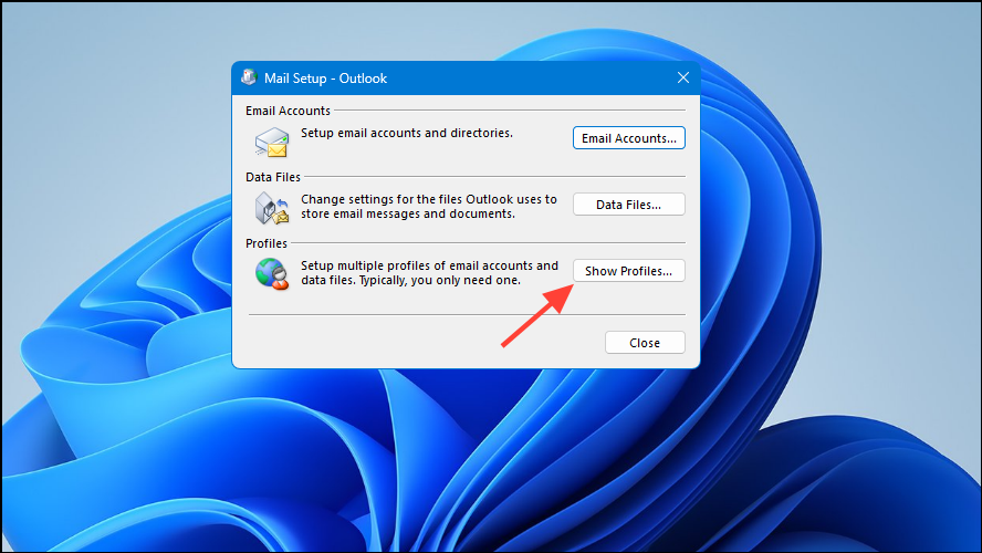 Step 4: In the Mail Setup window, click on Show Profiles.