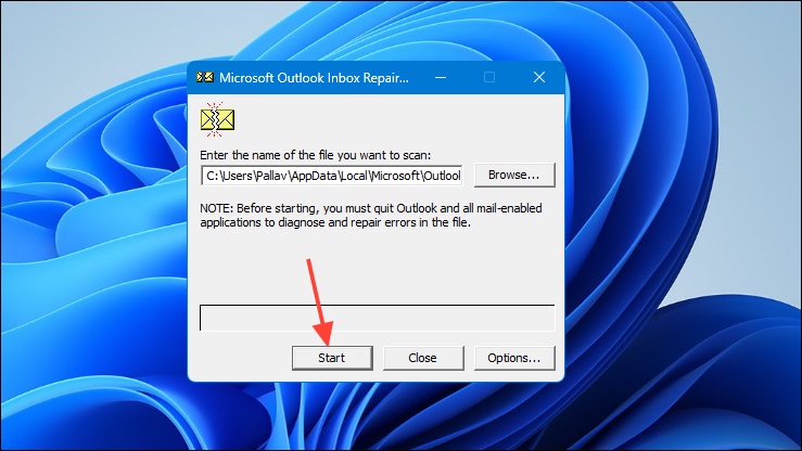 Step 6: Click Start to begin scanning the file for errors.