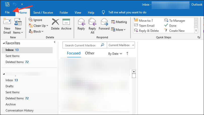 Step 1: In Outlook, click on the File tab.