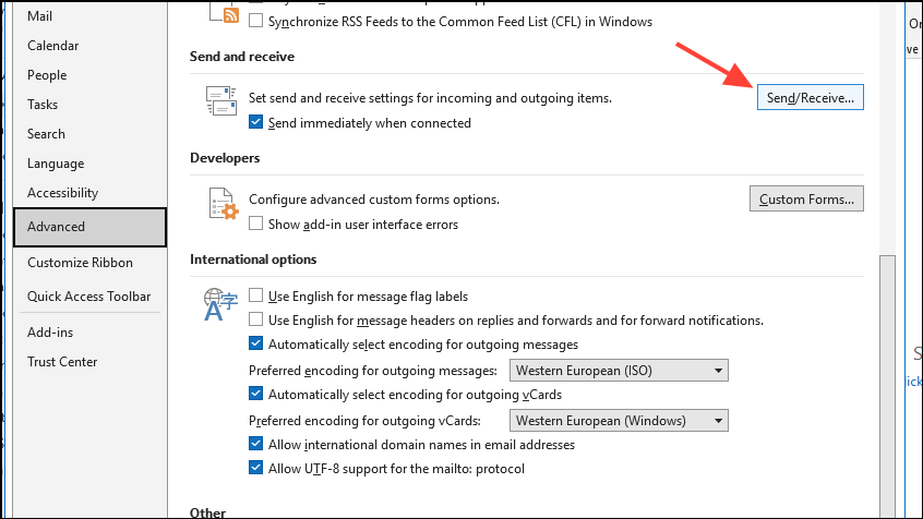 Step 3: Under the Send and Receive section, click on the Send/Receive... button.