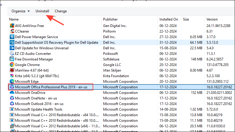Step 3: Find Microsoft Office in the list, select it, and click on Uninstall.