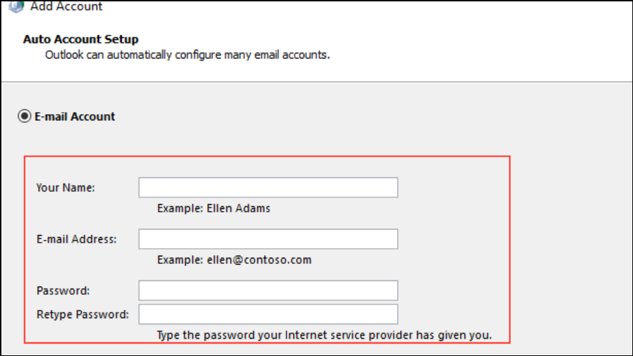 Step 3: Click Add to create a new profile. Enter a name for the new profile and add your email account credentials.