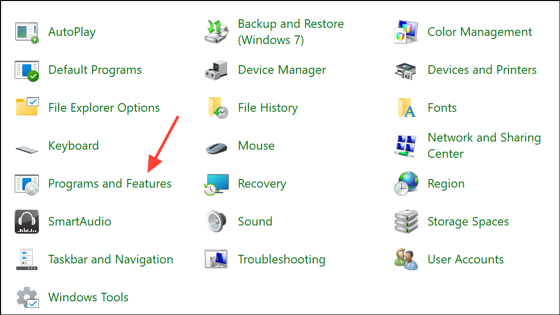 Step 2: Open the Windows Control Panel and go toPrograms and Features.