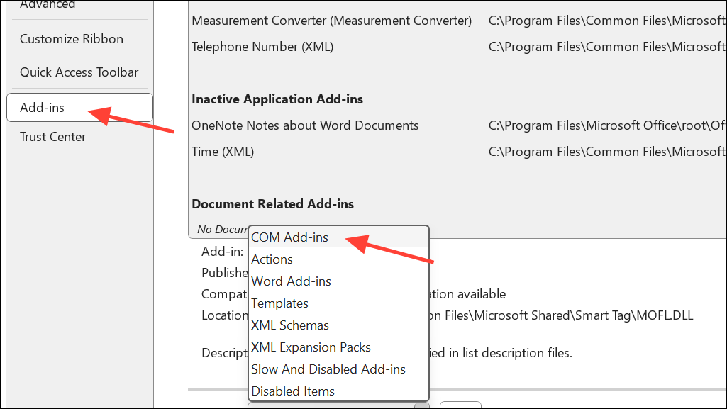 Step 2: Disable add-ins by navigating to File > Options > Add-Ins. At the bottom, select COM Add-ins and click Go. Uncheck all add-ins, restart Outlook, and re-enable them one at a time to identify the culprit.