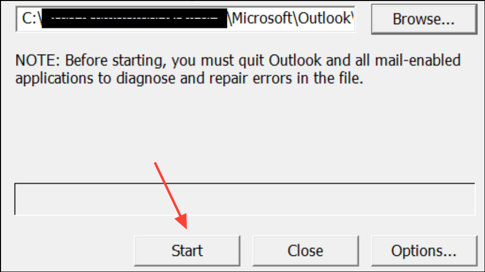 Step 2: Double-click ScanPST.exe to launch the repair tool. Click Browse and select the PST or OST file you want to repair. Click Start to begin scanning the file for errors.