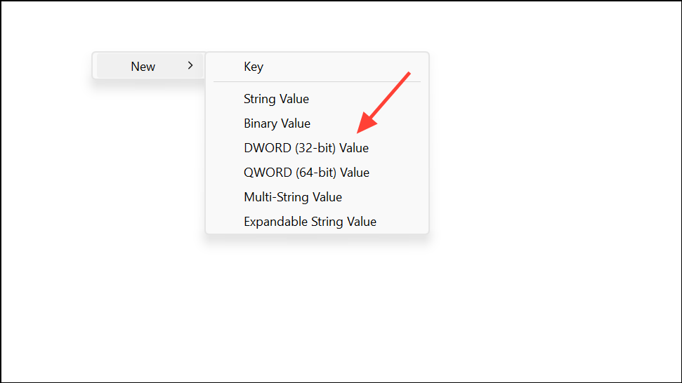 Step 3: Right-click in the right pane, select New > DWORD (32-bit) Value. Name the new value UseLegacyCacheSize.