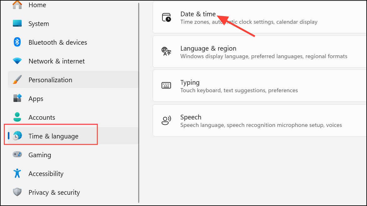 Step 1: Open Settings > Time & Language > Date & Time in Windows.