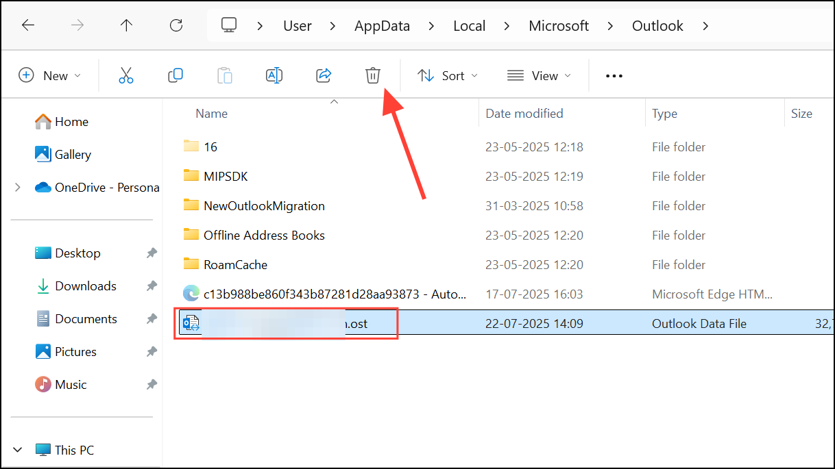 Step 4: If Outlook remains stuck, close it, navigate to %localappdata%\Microsoft\Outlook, and delete or rename the OST file. Outlook will rebuild it upon restart.