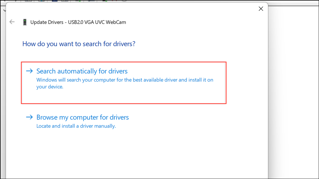 Step 3: Choose "Search automatically for drivers." Windows will search online and install the latest compatible drivers.