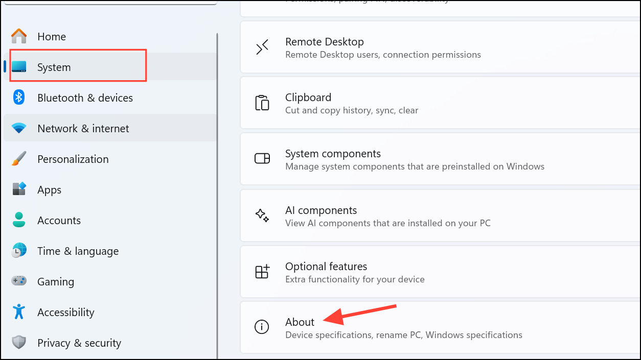 Step 1: Press Windows + I to open Settings, navigate to "System," and click "About."