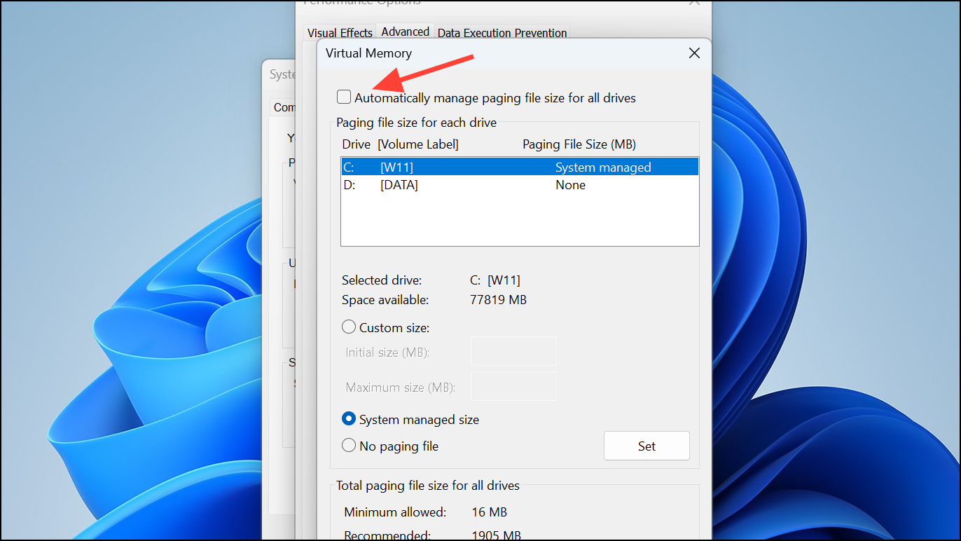 Disable Automatic Paging File Management