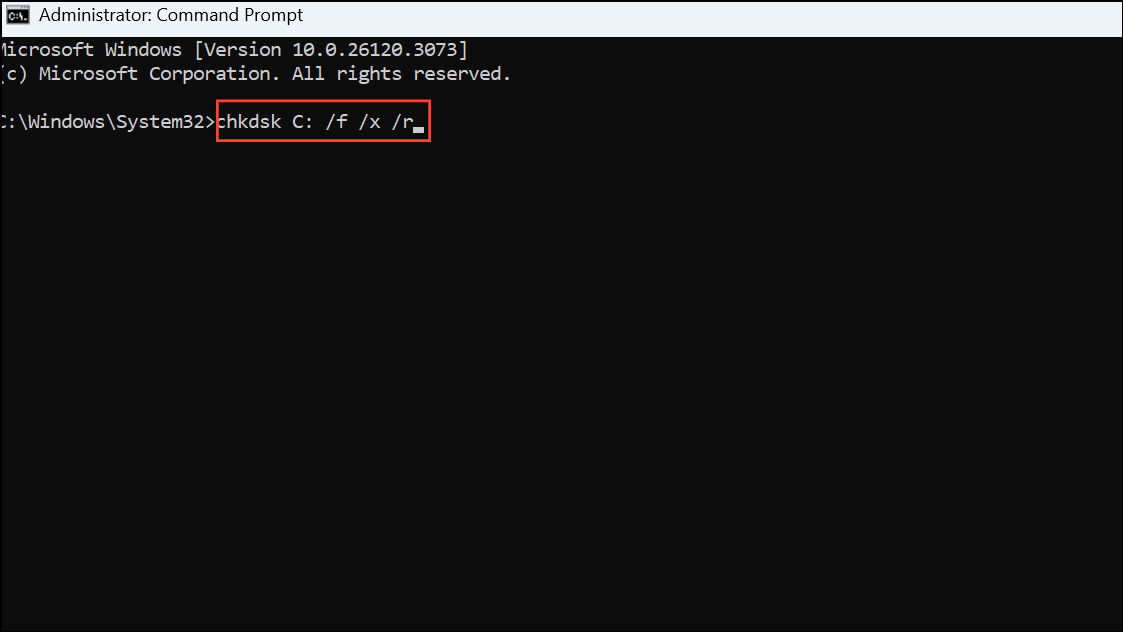 chkdsk C: /f /x /r