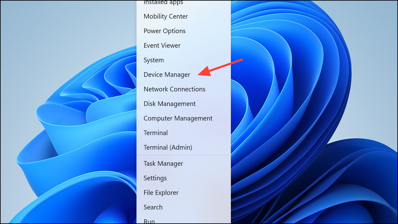 Step 1: Right-click the Start button and select "Device Manager" from the Quick Links menu.