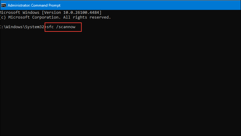 Step 3: Wait for the scan to finish. If issues are detected and fixed, proceed to run the following commands one at a time, pressing Enter after each: