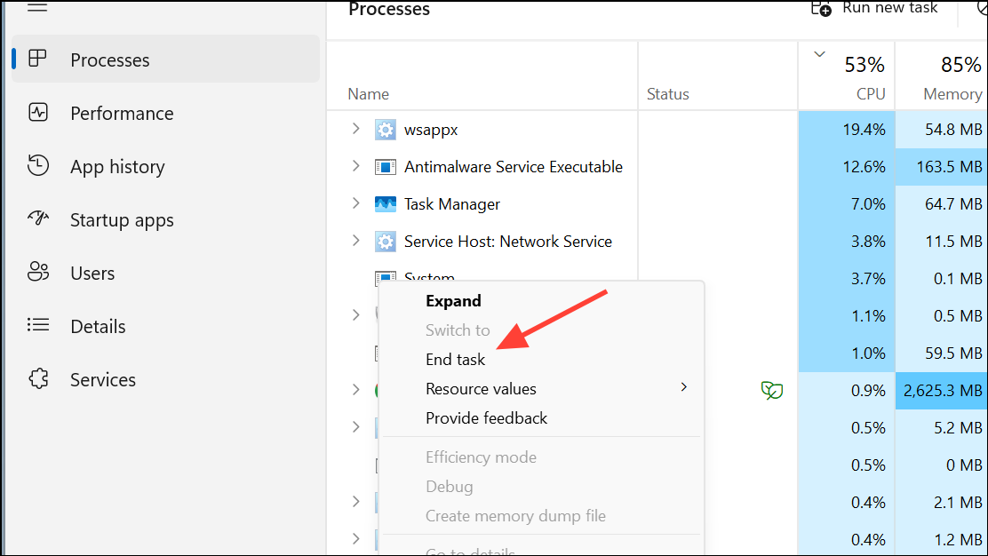 Step 2: Right-click each Teams process and select End task. This ensures no background Teams instances remain, which can cause repeated crashes or prevent successful restarts.