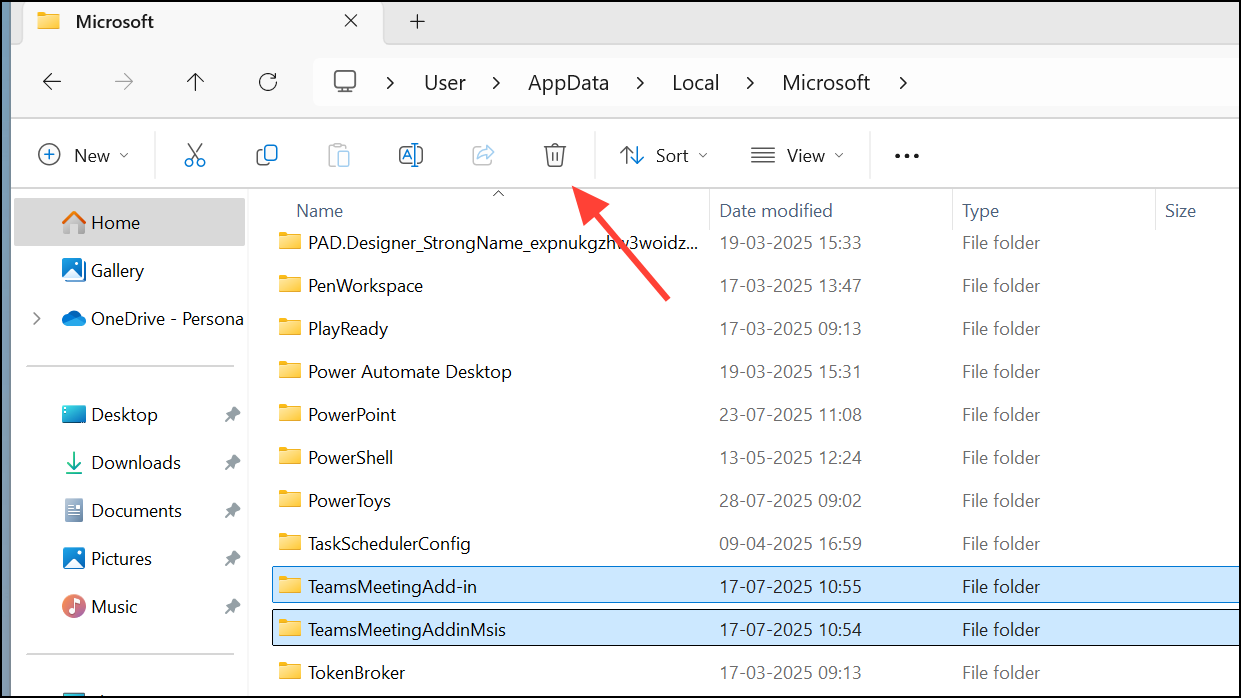 Step 2: Delete all Teams-related folders in both %appdata% and %localappdata% to clear any remaining data.