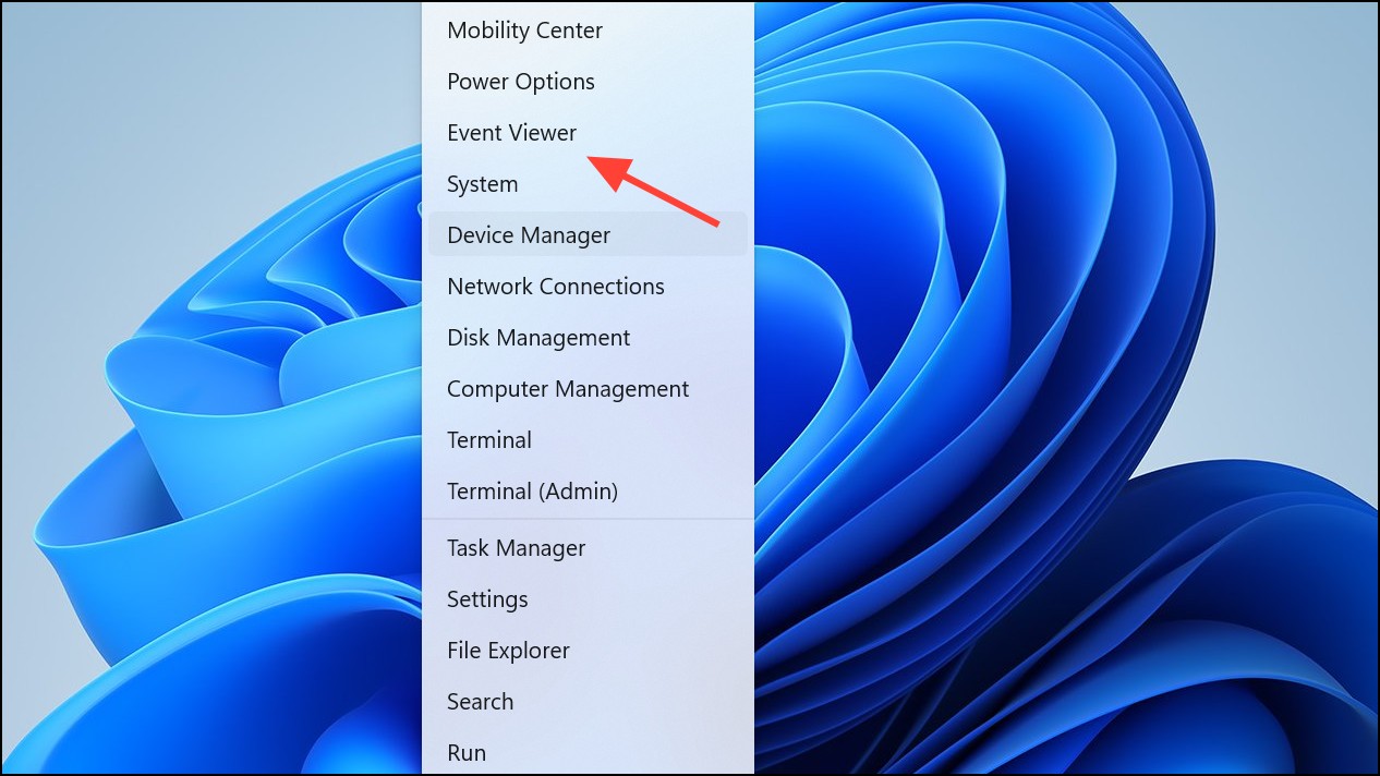 Step 1: Press Win + X and select Event Viewer.