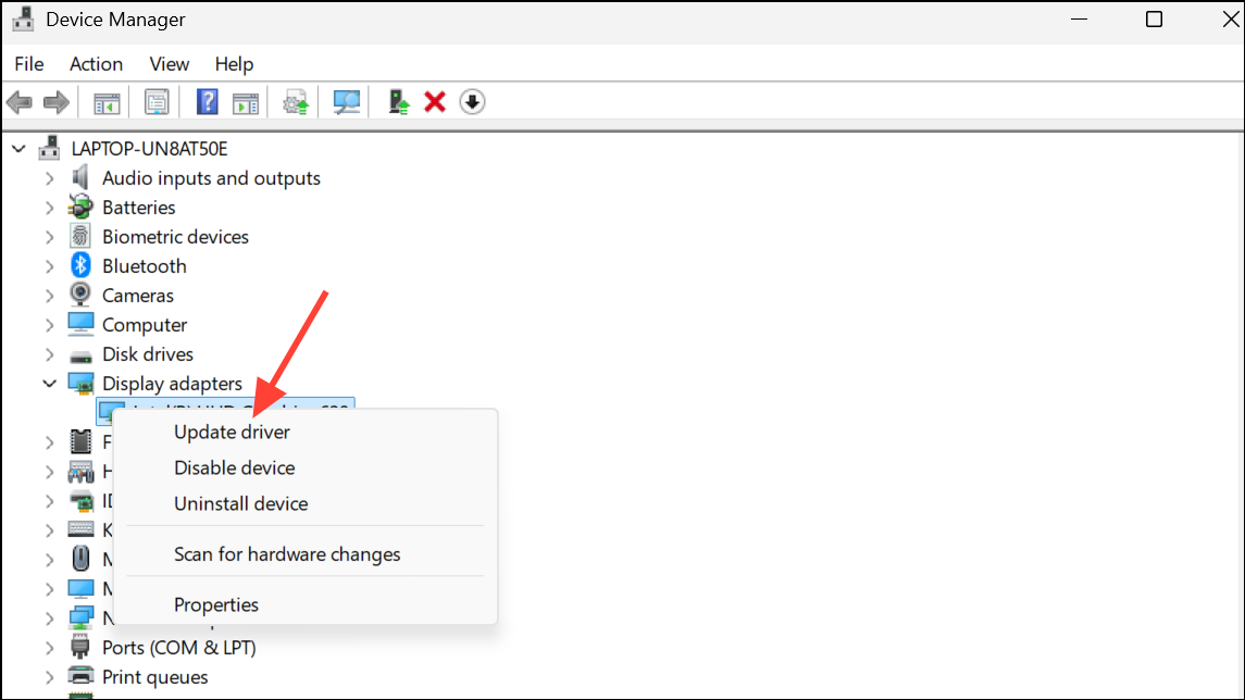 Step 2: Expand the Display adapters section. Right-click your graphics card and select Update driver.