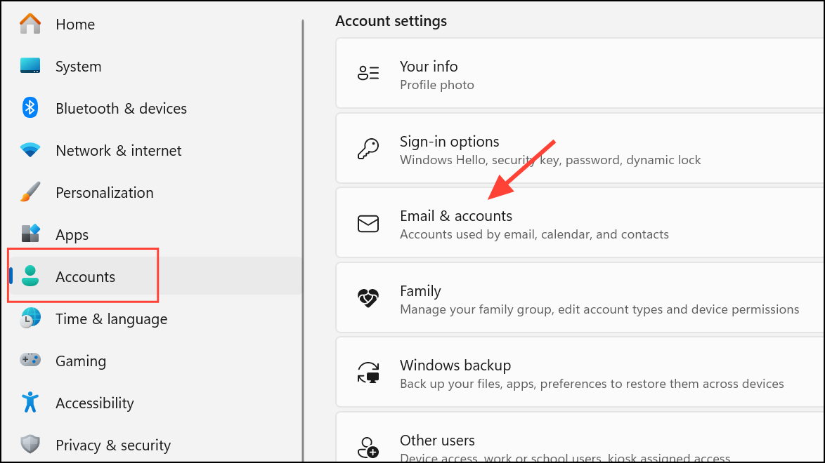 Step 3: Open Settings > Accounts > Email & accounts and remove any problematic accounts.