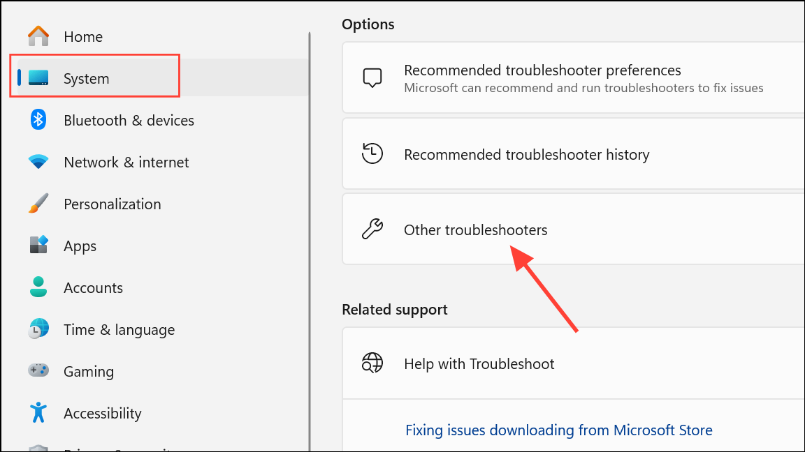 Step 1: Press Windows + I to open Settings. Navigate to System > Troubleshoot > Other troubleshooters (in Windows 11).
