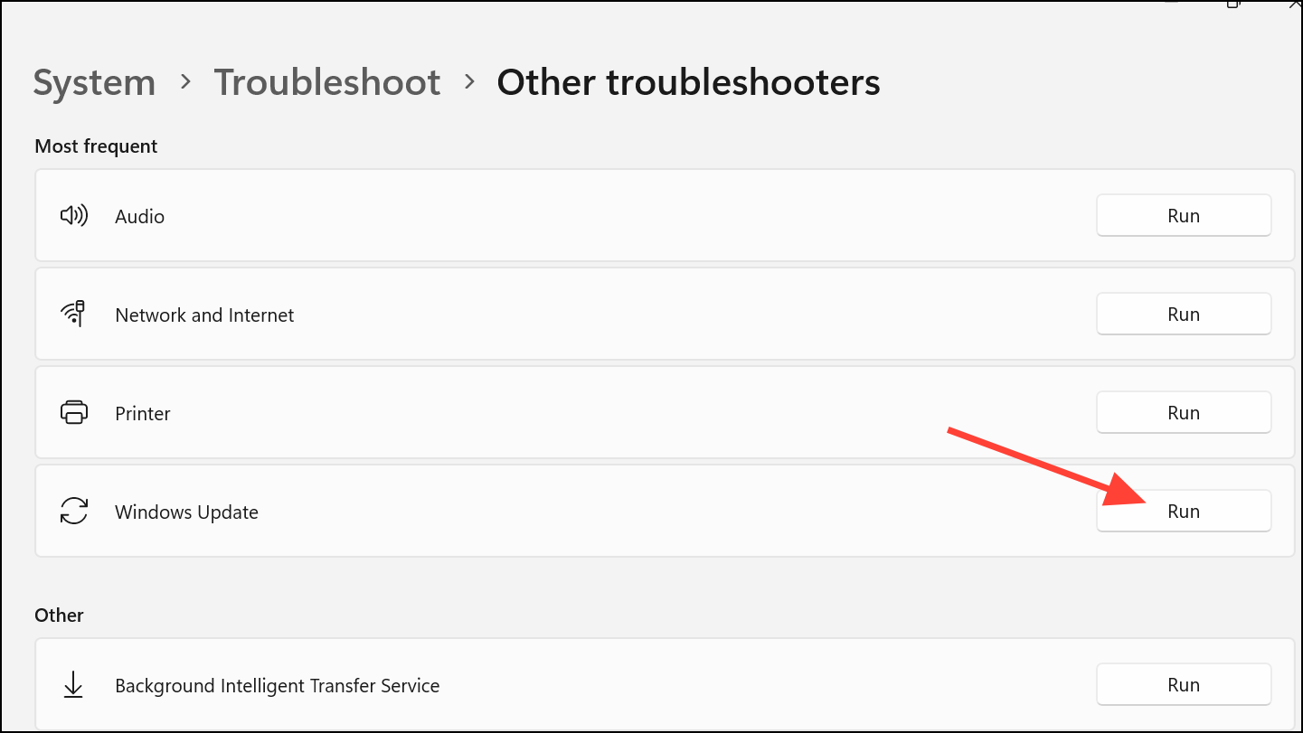 Run the Windows Update Troubleshooter