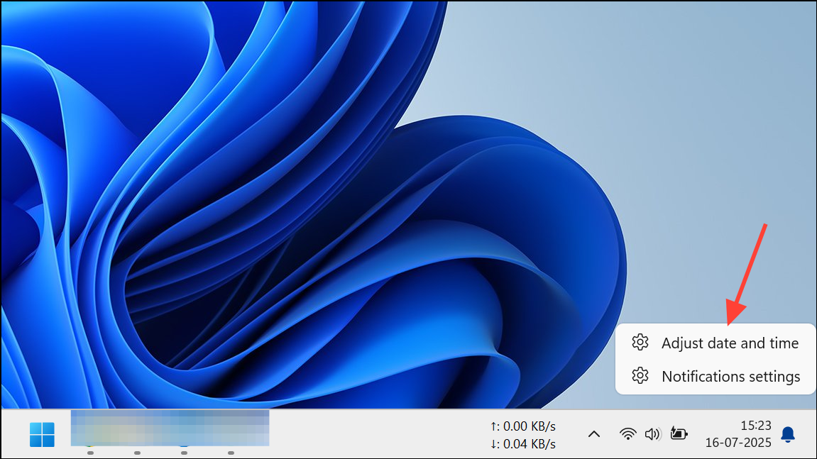 Step 1: Right-click the clock in the taskbar and select Adjust date and time.