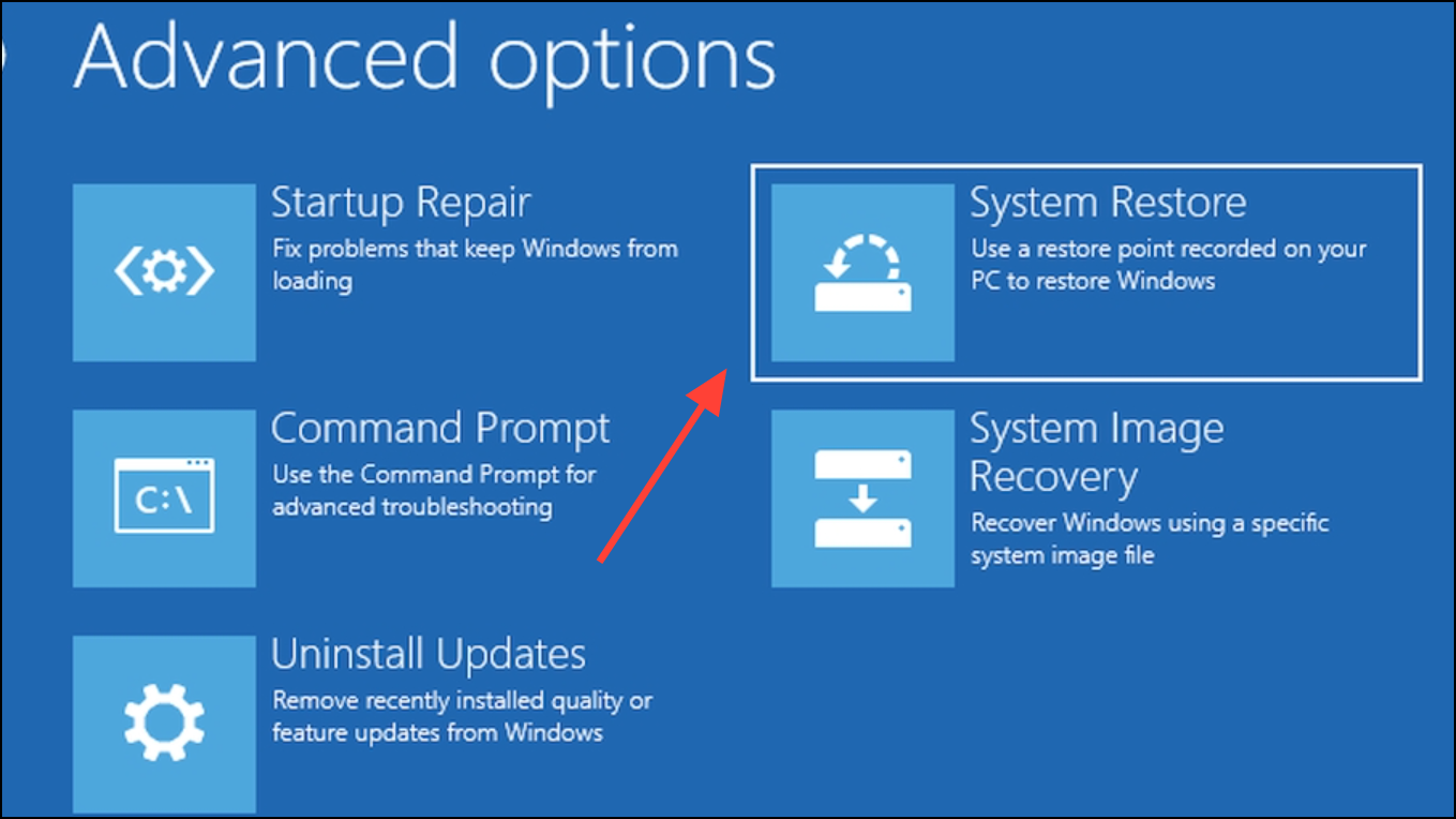 Step 2: Once in the recovery environment, select "Troubleshoot" > "Advanced Options" > "System Restore."
