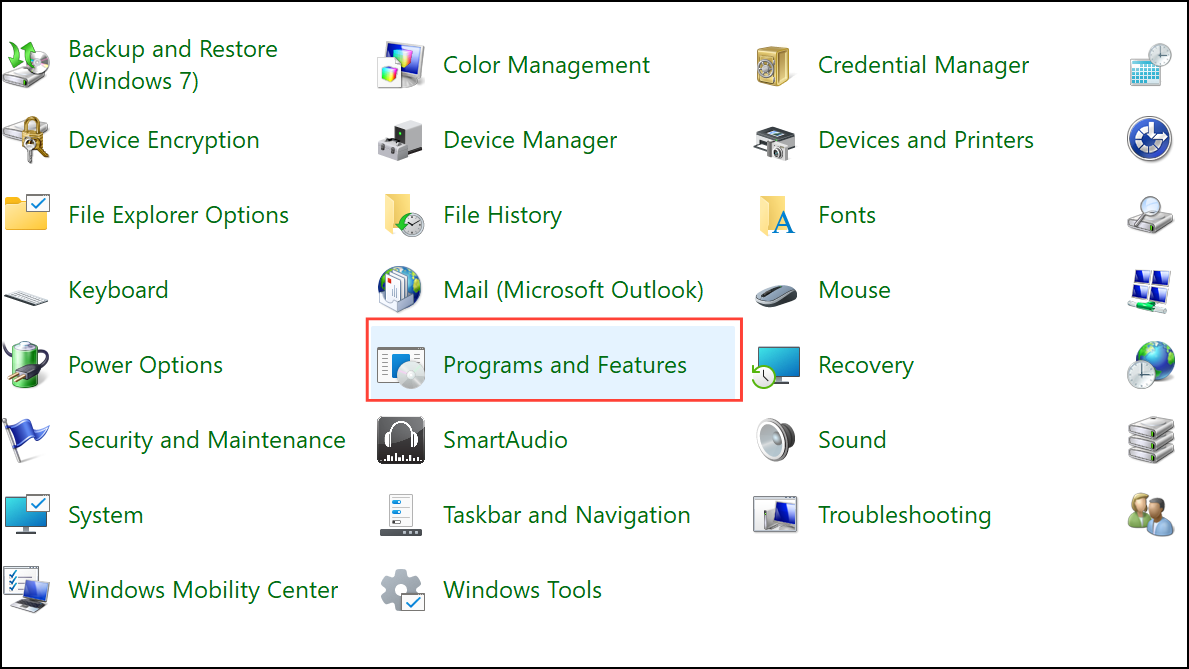 Step 3: In Safe Mode, open Control Panel by typing it in the search bar. Navigate to "Programs" > "Programs and Features."