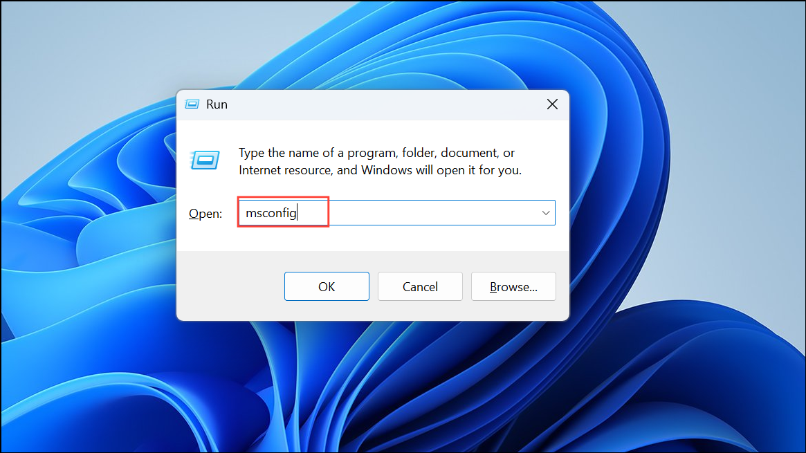 Step 1: Press Windows Key + R, type msconfig, and press Enter to open System Configuration.