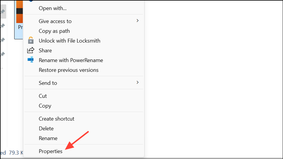 Step 2: Right-click the file and select Properties.