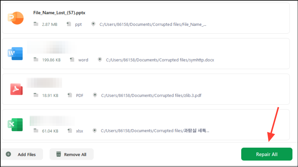 Step 2: Launch the repair tool and select the corrupted PowerPoint file. Most tools allow you to add multiple files for batch processing.