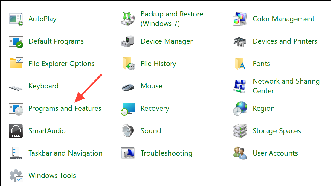 Step 2: Open the Windows Control Panel and select Programs and Features.