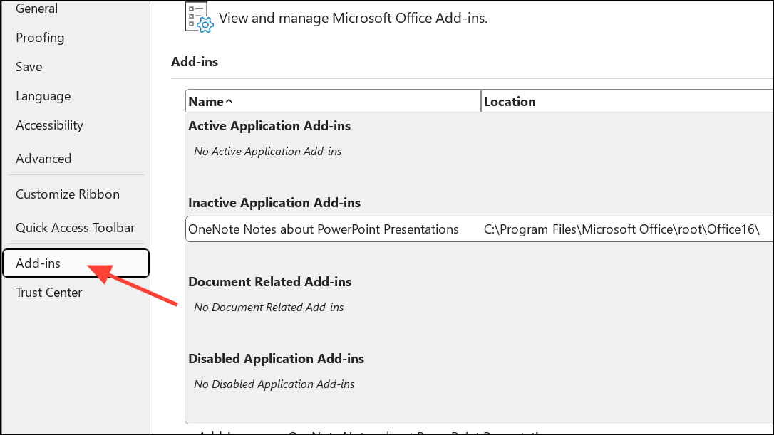 Step 3: If the export works in Safe Mode, disable add-ins one by one from File > Options > Add-ins to identify the culprit.