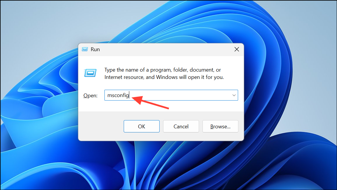 Step 1: Press Windows + R, type msconfig, and press Enter.