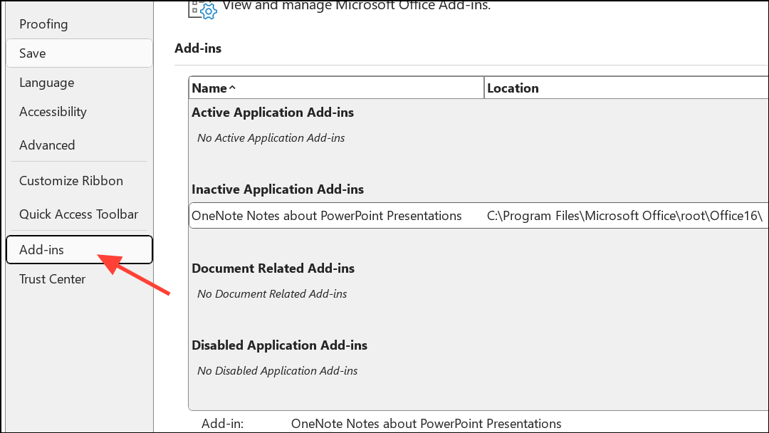 Step 5: If the freezing stops, enable add-ins one by one, restarting PowerPoint each time, to pinpoint which add-in causes the issue. Remove or update any problematic add-ins.
