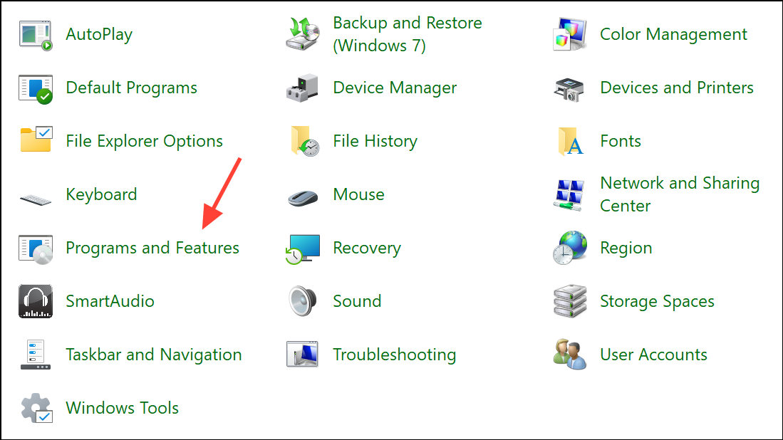Step 2: Open the Control Panel and navigate to Programs and Features.