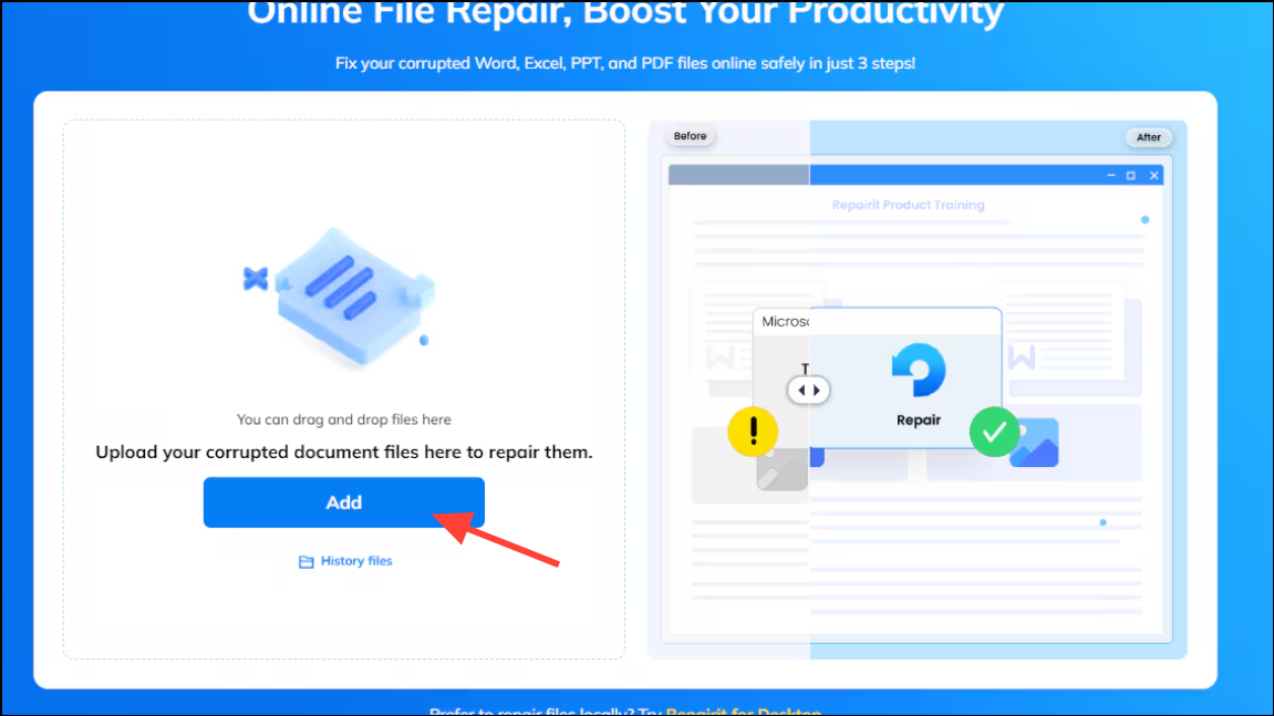 Step 2: Open the repair tool and select the option for file repair. Click the +Add button to browse and select your blank PowerPoint file.