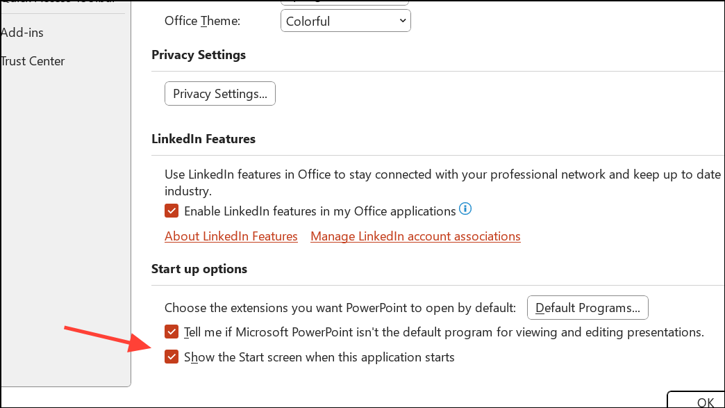 This adjustment stops PowerPoint from automatically opening a blank file on startup, allowing you to choose between recent files or templates instead.