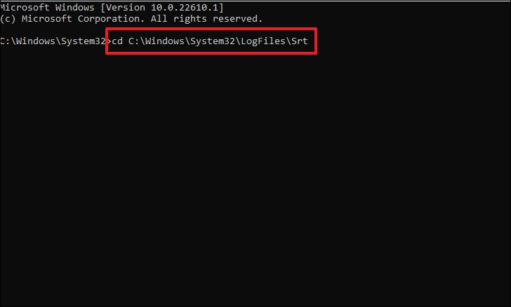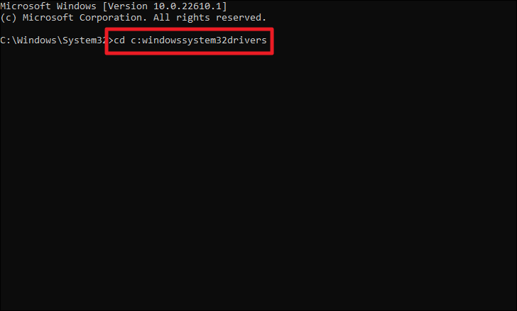 Step 5: In the Command Prompt, navigate to the directory by typing the following command and pressing Enter: