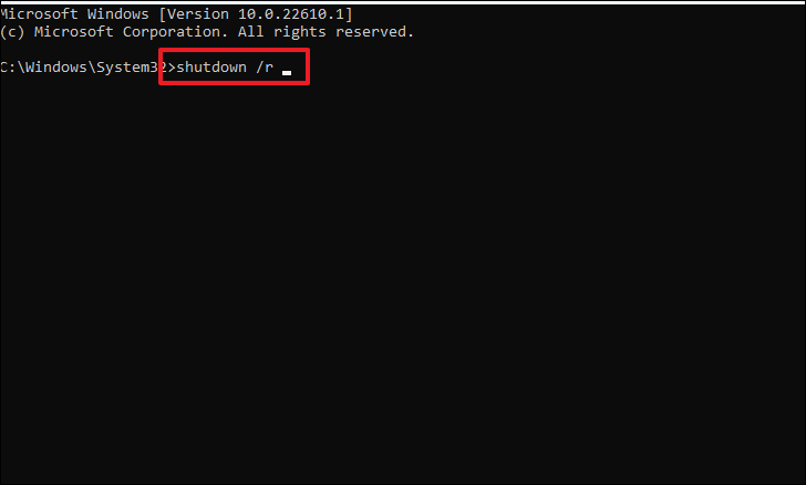 Step 7: Once the process completes, restart your PC by typing shutdown /r in the Command Prompt and pressing Enter, or simply close the Command Prompt window.