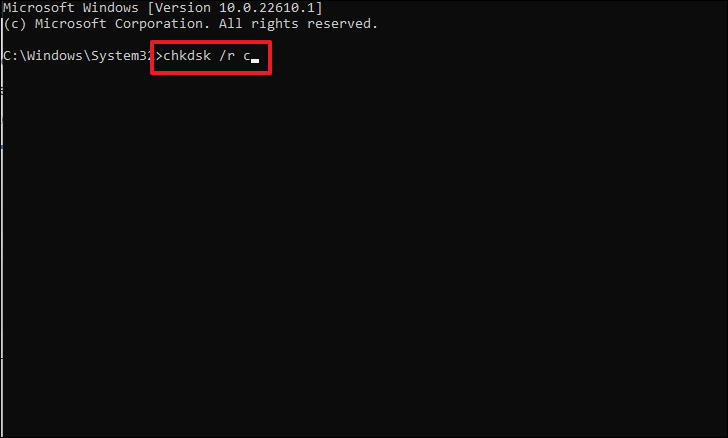 Step 6: After completing the above commands, run the Check Disk utility to scan and fix bad sectors on your hard drive. Execute the following commands, pressing Enter after each: