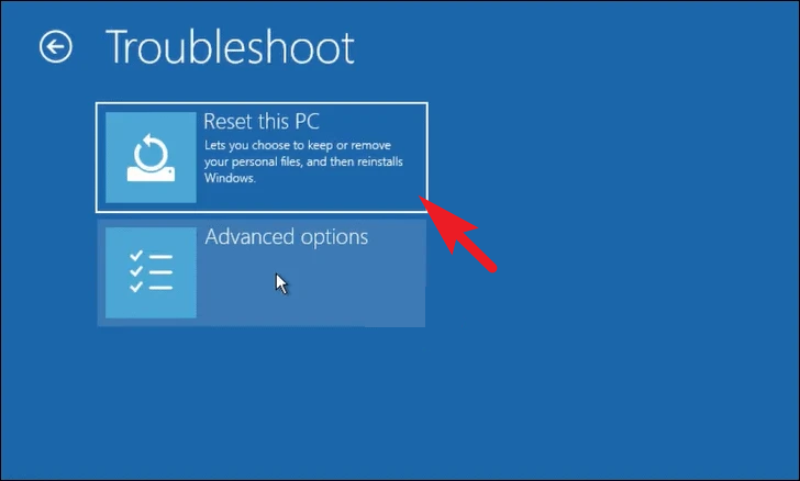 Step 3: On the 'Troubleshoot' screen, select Advanced options.