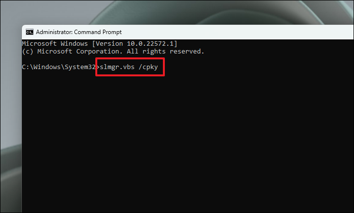 Step 4: To clear the product key from the registry, type: