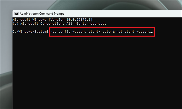 Step 7: Start the Windows Update service by running: