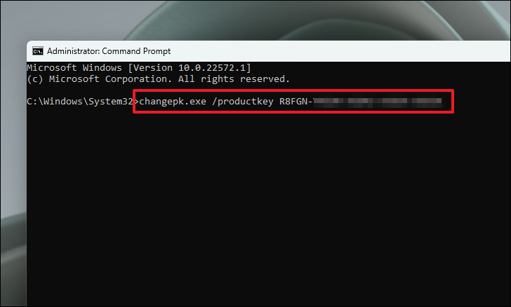 Step 8: Finally, initiate the upgrade by entering your new product key with the following command (replace XXXX-XXXX-XXXX-XXXX-XXXX with your actual product key):